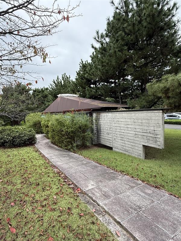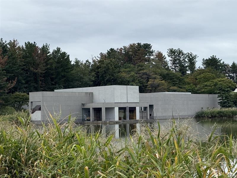 次に酒田市美術館(建築家池原義郎)を訪れる。広い庭に面して展示空間が配置し気持ち良い空間が広がる。トイレは鉄板で組まれている。