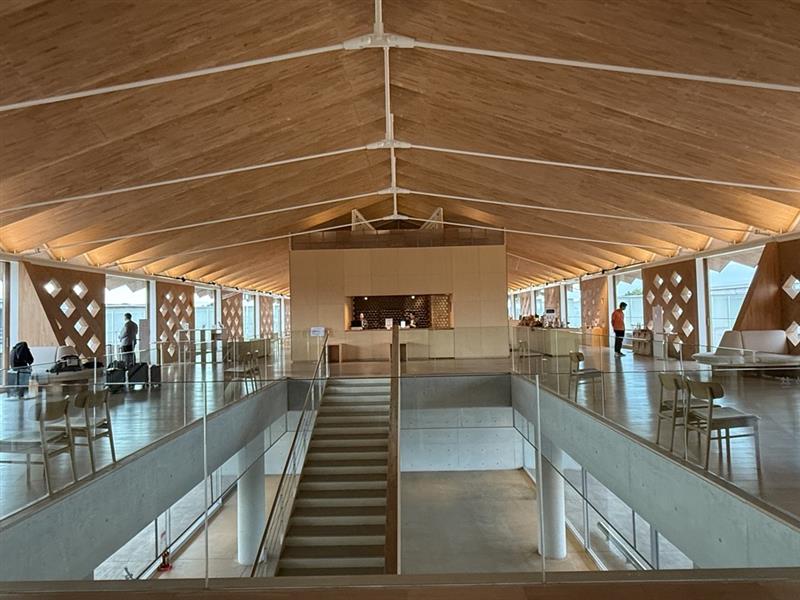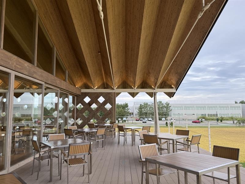 内部は2階をロビー、レストランの主階とすることで水田や遠方の風景が楽しめる心地良い空間が実現している。