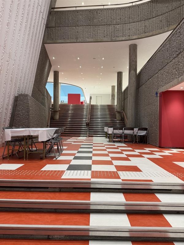 メイン会場となった千葉県文化会館は、建築家・大高正人氏が設計し、1967年に竣工した近代建築です。コンクリート造の構造をそのまま表した明快な空間構成が印象的でした。